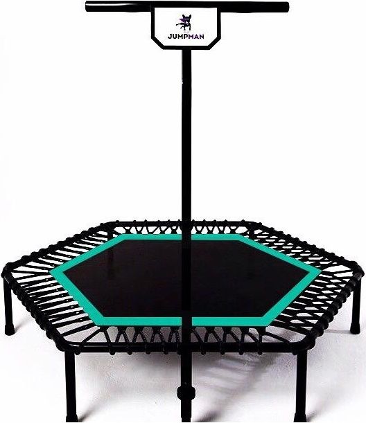Фитнес батут для джампинга с ручкой Jumpman Российского производства имеет крепкую раму и создан не только для домашнего использования, но для коммерческих целей и прекрасно подходит для оборудования спортивного зала. Полотно изготавливается из перматрона европейского качества, который выдерживает ежедневные нагрузки до 130 кг диаметр полотна 105 см. Диаметр усиленного, износоустойчивого троса 10 мм, на один батут уходит 13,5 м, благодаря этому батут хорошо амортизирует. При отсутствии на складе, срок изготовления 5-7 дней. (есть также другие цвета)